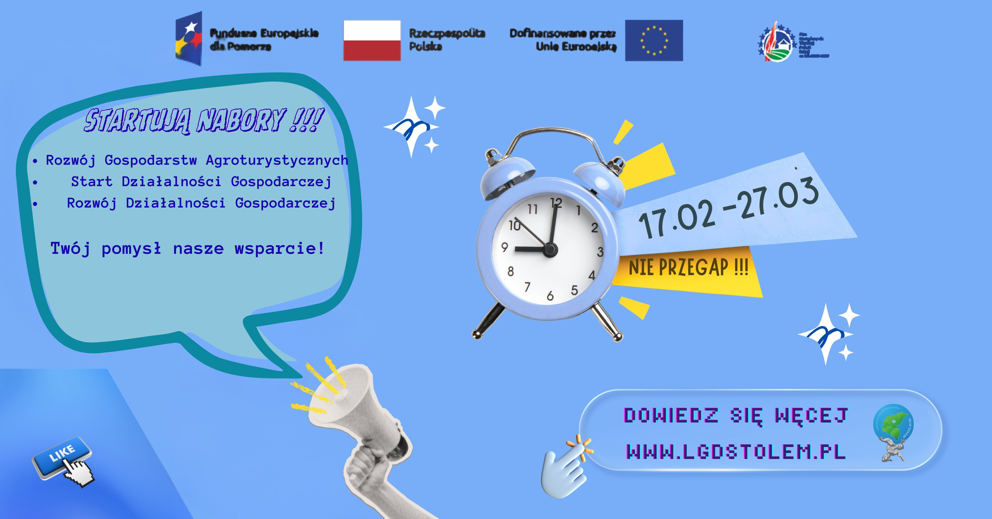 Szczegółowe informacje, regulamin oraz wzory wniosków dostępne są na stronie LGD Stolem